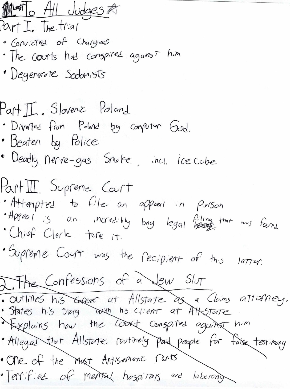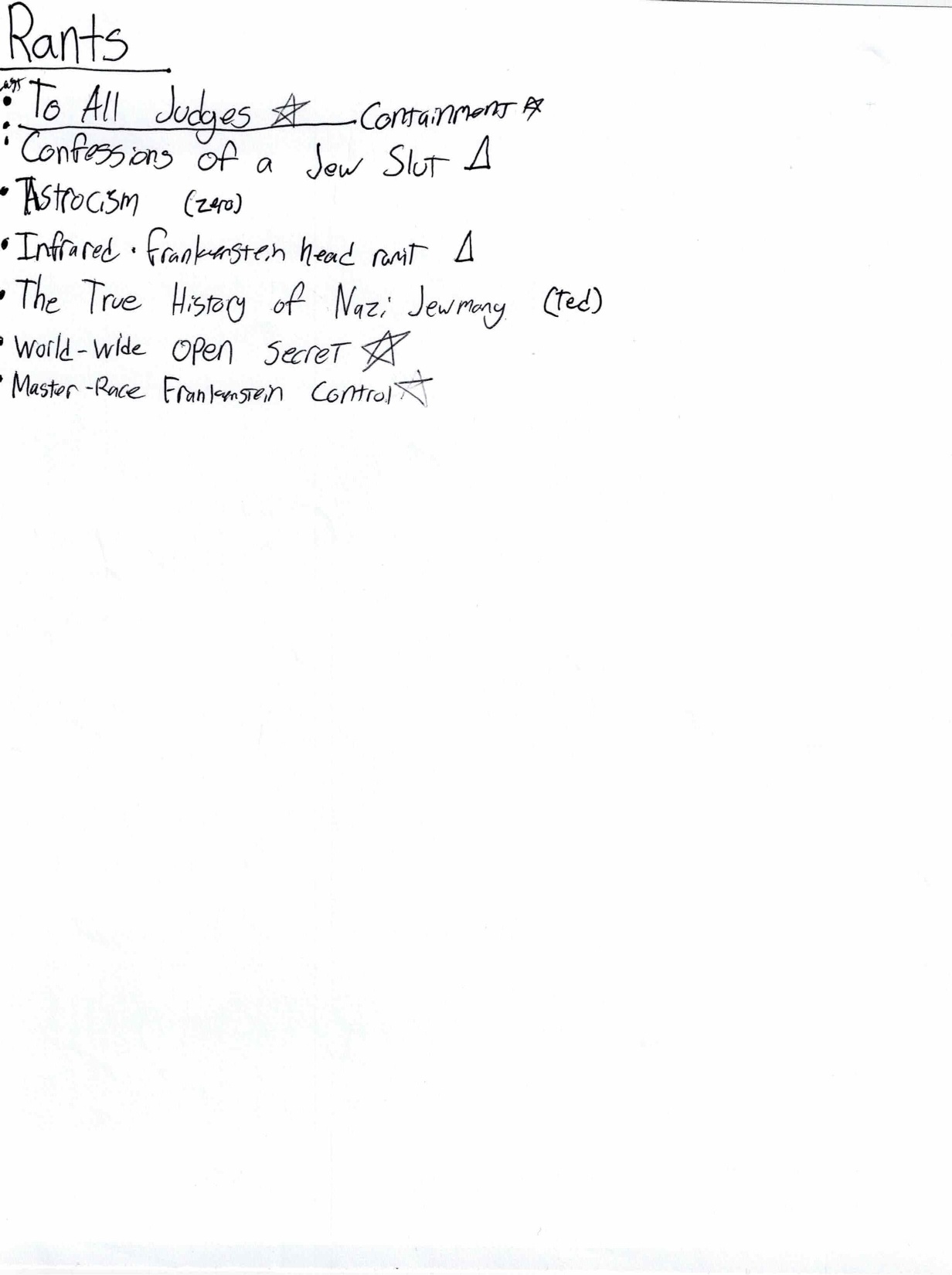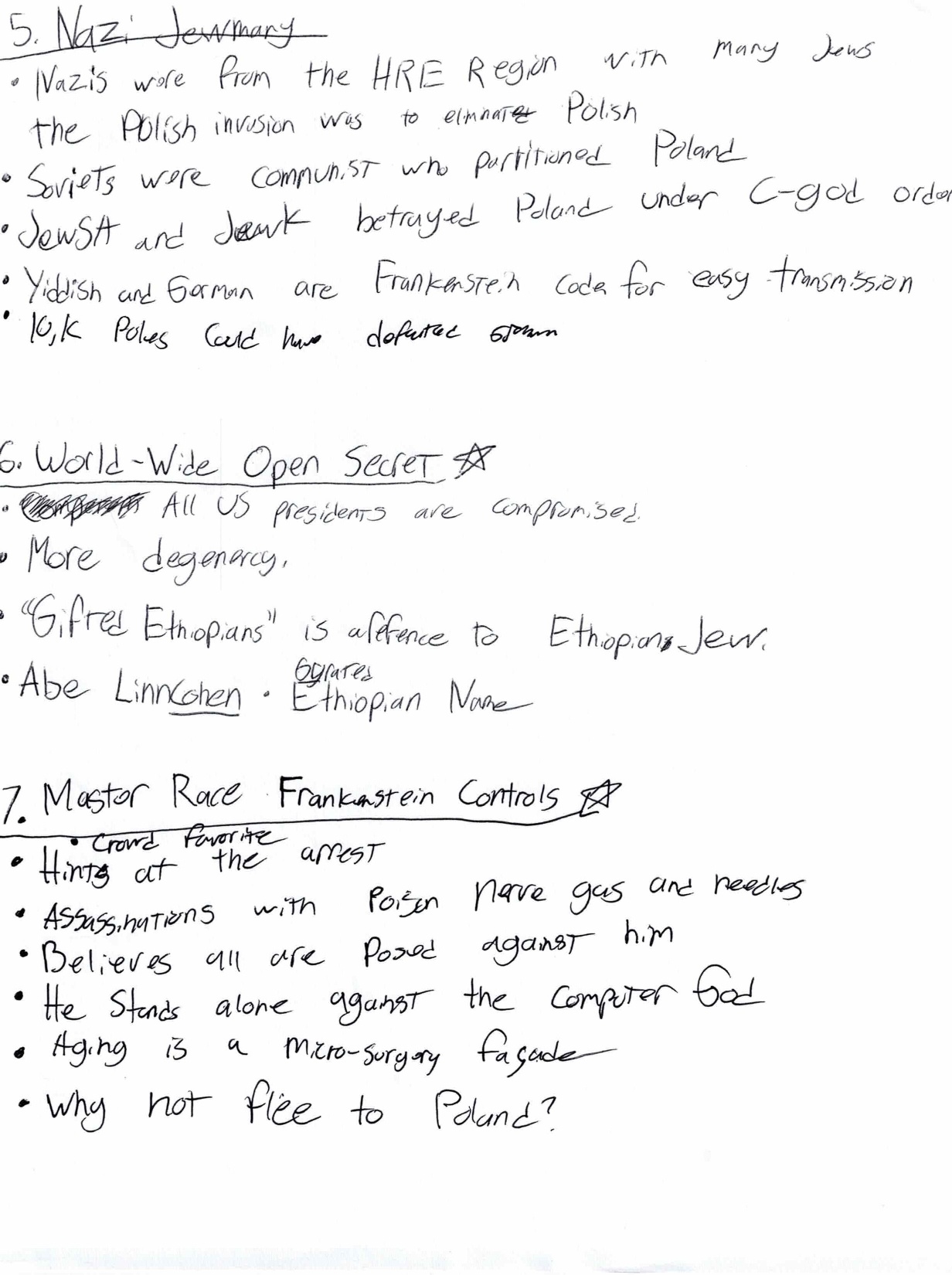 TO ALL LISTENERS: BELOW ARE THE HAND-WRITTEN SCANNED DOCUMENTS I PREPARED IN ADVANCE FOR MY STREAM ON HALLOWEEN DAY. ONE OF THE BEST THINGS I LEARNED FROM BRIEFLY WORKING A "REAL JOB" WAS TO WRITE (NOT TYPE) NOTES BECAUSE YOU RECORD THAT INFORMATION TO COMPLETELY DIFFERENT PARTS OF YOUR BRAIN IN DUPLICATE THAN BY SIMPLY READING OR HEARING IT. WISELY, I HAVE STUDIOUSLY PREPARED ALL OF MY "SPOTLIGHT" EPISODES USING THIS TECHNIQUE SO AS TO BETTER RECALL IT. JUDGING BY THE STATE OF MY HANDWRITING ONE CAN TELL I DO NOT WRITE VERY OFTEN BUT FOR YOUR AMUSEMENT I WILL SHARE THEM ANYWAYS. MAKE COPIES FOR YOURSELF.